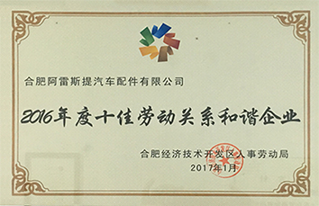 2016年度十佳勞動關系和諧企...