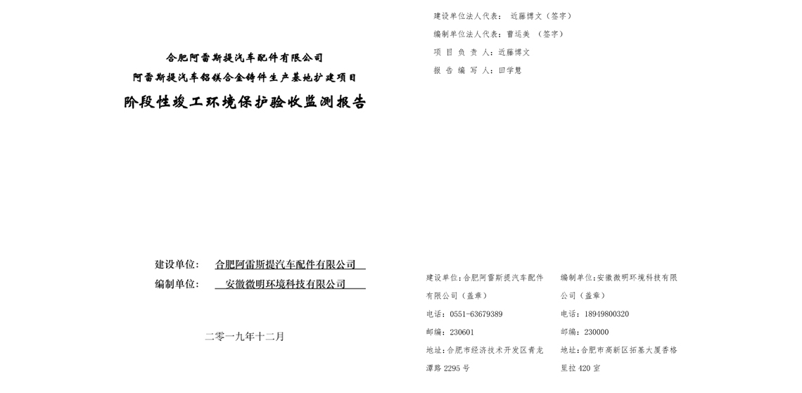 附件:阿雷斯提汽車鋁鎂合金鑄件生產基地擴建項目階段性竣工環(huán)境保護驗收監(jiān)測報告
