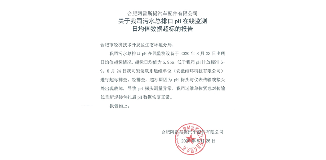 關(guān)于我公司廢水總排口pH在線監(jiān)測(cè)儀器數(shù)據(jù)超標(biāo)的報(bào)告