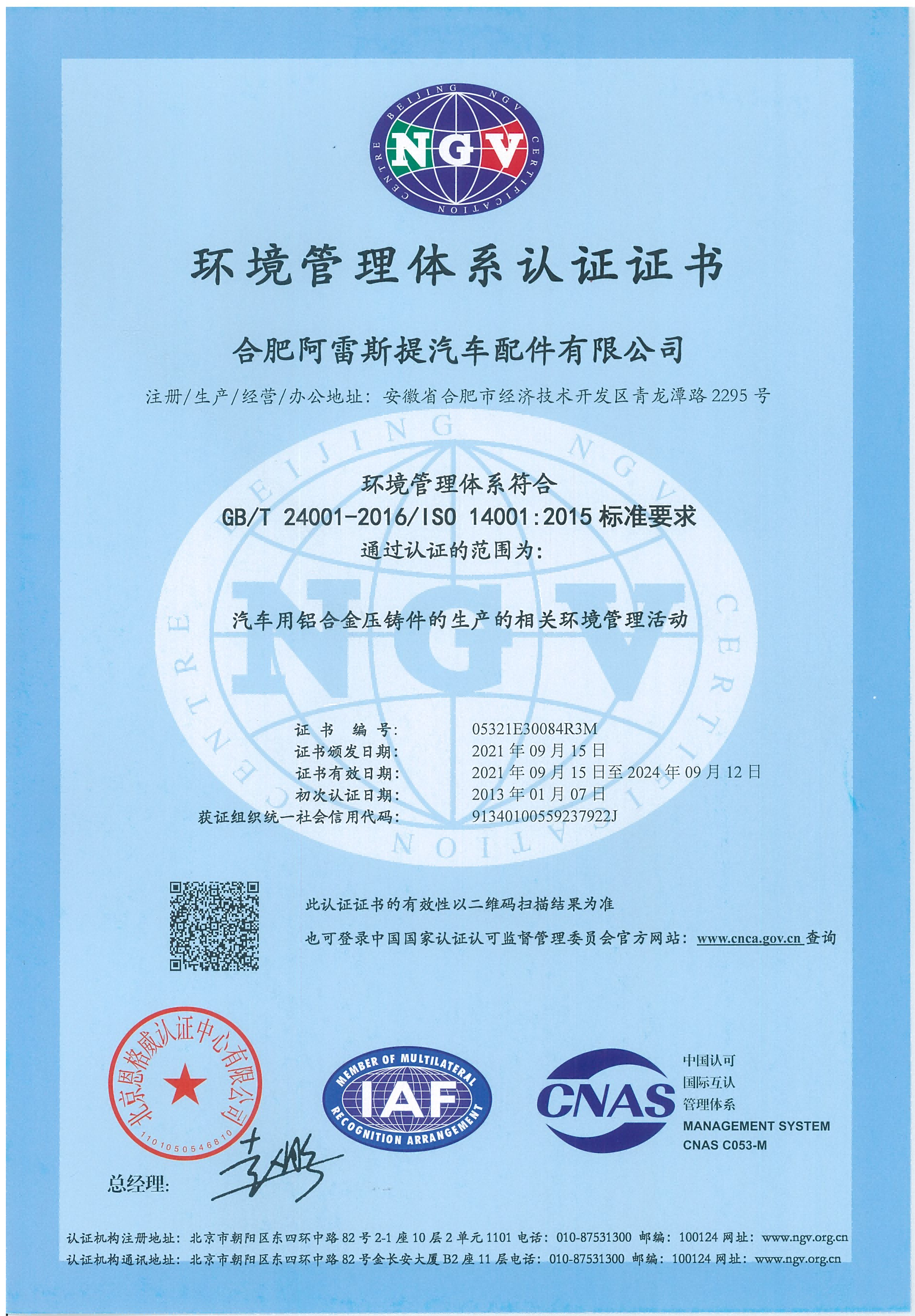 環(huán)境管理體系認(rèn)證證書中文版