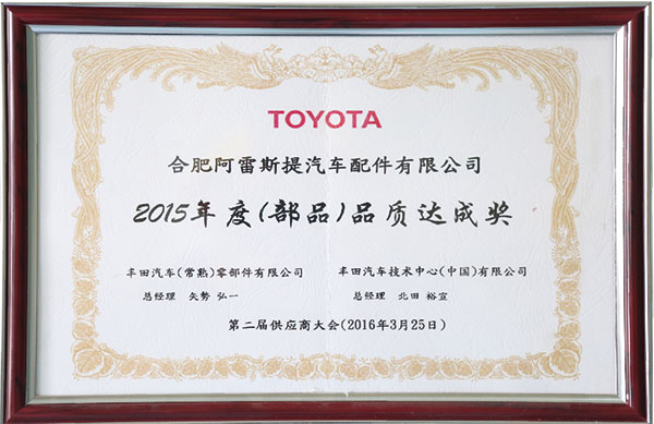2015年度(部品)品質(zhì)達成獎