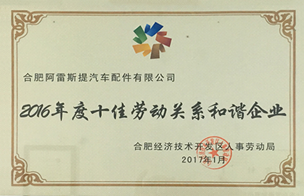2016年度十佳勞動關(guān)系和諧企業(yè)
